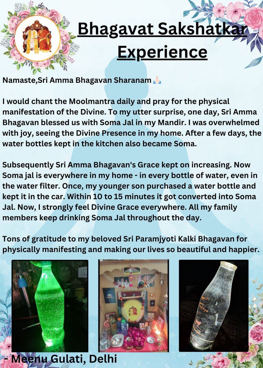 本当に驚いたことに、ある日、シュリ・アンマ・バガヴァンが私のマンディール(聖なる部屋・場所)でソーマ水を授けてくださったのです。
