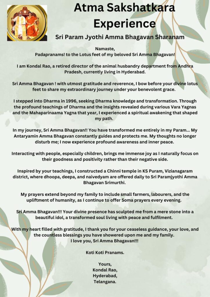 シュリ・アンマ・バガヴァン、最大限の感謝と畏敬の念を込めて、あなたの神聖な蓮華のみ足の前にこうべを垂れ、慈悲深い恩寵の下での私の素晴らしい旅を分かち合いたいと思います。