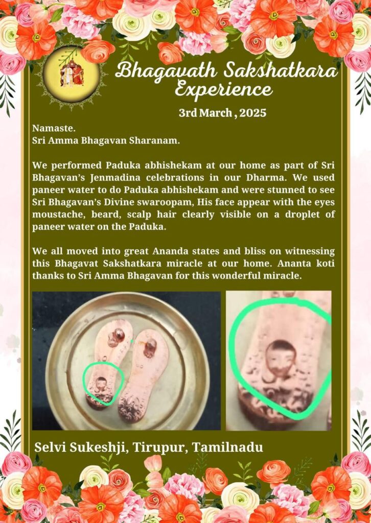 私たちは皆、このバガヴァット・サクシャッカーラ(聖なる力の現実化)の奇跡を我が家で目撃させていただき、素晴らしいア-ナンダの境地と至福に浸ることができました。