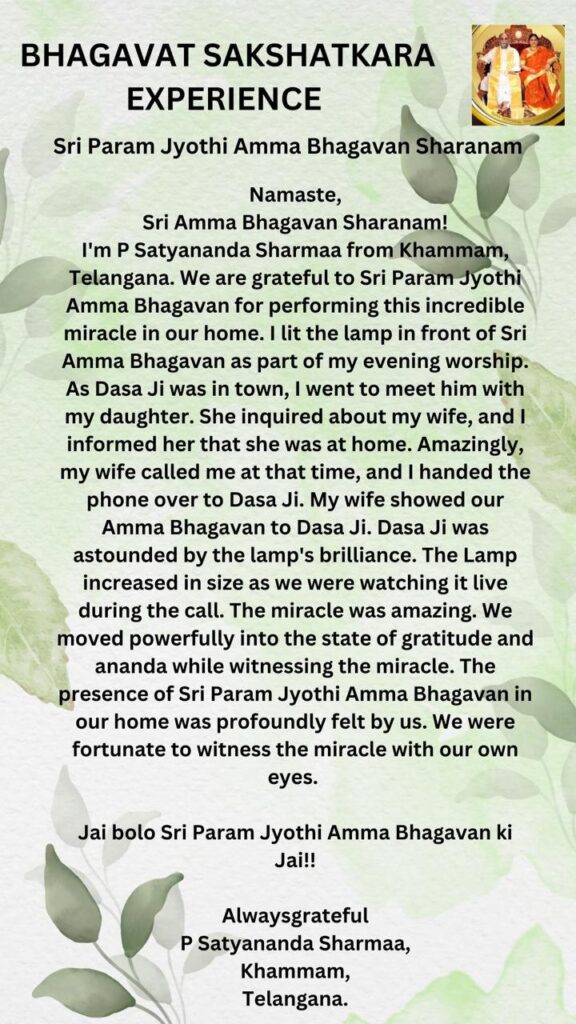我が家でこの信じられないような奇跡を起こしてくださったことに、シュリ・パラムジョッティ・アンマ・バガヴァンに感謝しております。