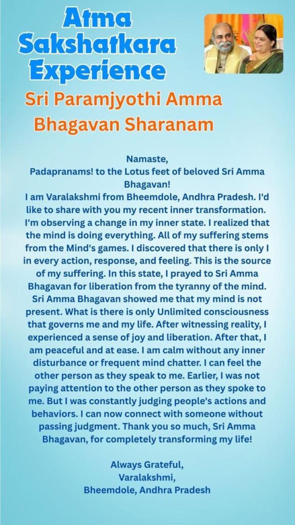 私の人生を完全に変容させてくださったシュリ・アンマ・バガヴァンに、心から感謝申し上げます!