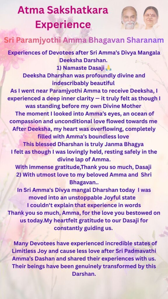 シュリ・アンマのディヴィヤ・マンガラ(神聖で縁起の良い)・ディクシャ・ダルシャンを受けさせていただいた信奉者たちの体験