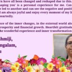 今では争いや混乱に巻き込まれることは無くなりました。ピークステイトになると、私はアンマバガヴァンの臨在を感じ、その状態に長く留まると、あまりにも強烈で強力なので、目を開けて仕事を続けることさえ困難になります。私はほとんどの時間、静寂を感じています。私は自分の人生の今に生きることができます。私が今、このような素晴らしい人生を生きることができるのは、ひとえにアンマバガヴァンの恩寵のおかげなのです。これらの絶妙なムクティのステイトを私に与えてくださったシュリ・アンマバガヴァンに、常に感謝してまいります。