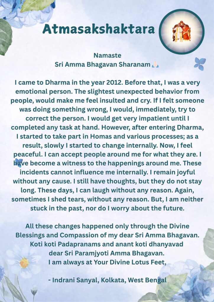 これらの変化は、私の親愛なるシュリ・アンマ・バガヴァンの神聖な祝福と慈悲によってのみ起こされたものです。