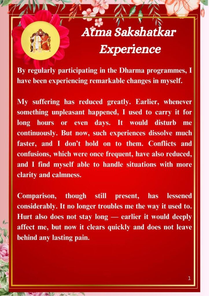 私の苦しみは大きく軽減されました。以前は、何か不快なことが起きると、何時間も、時には何日も引きずっていました。それは絶えず私を悩ませ続けました。しかし今では、そのような体験ははるかに早く解消され、私はそれに固執しなくなりました。頻繁に起きていた葛藤や混乱も減り、より明晰さと平静さをもって状況に対処できるようになったと感じています。