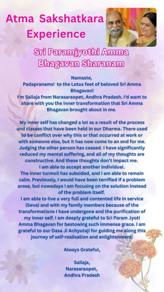このような計り知れない恩寵を授けてくださったシュリ・パラム・ジョッティ・アンマ・バガヴァンに深く感謝申し上げます。