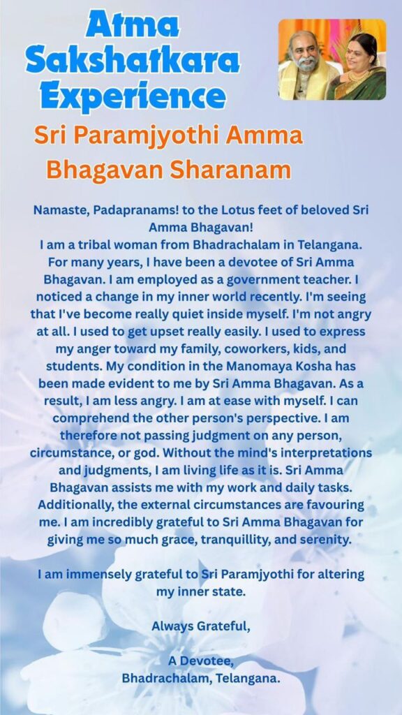 シュリ・アンマ・バガヴァンによって、マノマヤ・コーシャ(マインドがあらわれる鞘)の私の状態をはっきりとおしめしいただきました。
