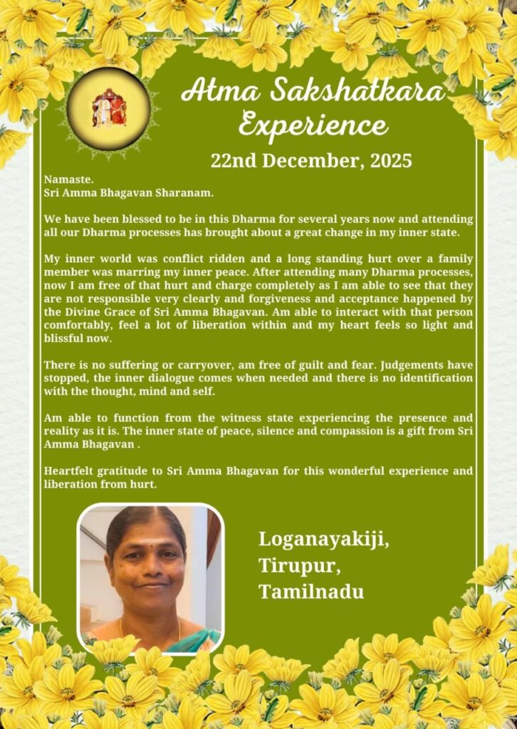 この平安、静寂、そして慈愛の内なる状態は、シュリ・アンマ・バガヴァンからの贈り物です。