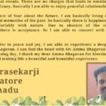 ナマステ、シュリ・アンマバガヴァン・シャラナムすべてのプロセスによって、今までになかった多くの変化が私にもたらされました。自分の行為に気づくことができるようになりました。私の中に悲しみはありません。過 ...