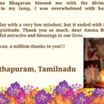ナマステシュリ・アンマ・バガヴァン・シャラナムアーンドラ・プラデーシュ州ヴィジャヤワダのスワプナと申します。シュリ・パラム・ジョッティ・アンマ・バガヴァンが我が家でこの信じられないような奇跡を起こして ...