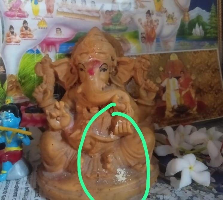 昨日、私のシュリ・ガネーシャの偶像からチャンダン(白檀)が顕現されたのを見て、とても嬉しかったです。
