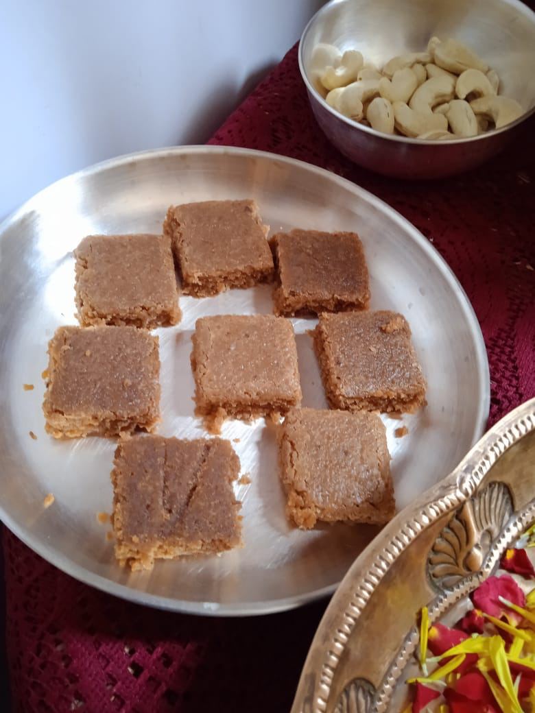 びっくり驚いたことに、シュリ・アンマバガヴァンはお受け取りくださり、サクシャッカーラ・プロセスの後、パパイヤとココナッツ入りのミルクベースのお菓子のバルフィに、深い痕跡が、はっきりと確認できました。