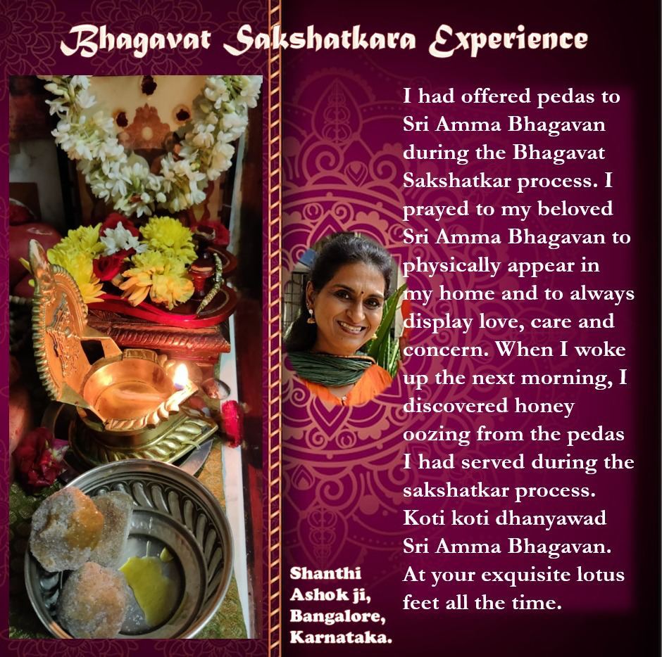 バガヴァット・サクシャッカーラのプロセスの間に、私はシュリ・アンマ・バガヴァンにミルクベースの丸く甘いお菓子のペダを捧げました。