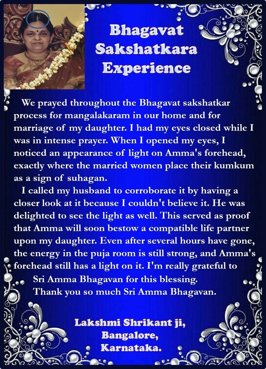 私たちは、我が家のマンガラカラム(縁起の良さ・吉祥)と娘の結婚のために、バガヴァット・サクシャッカーラのプロセスの間中祈り続けました。熱心に祈っている間、私は目を閉じていました。