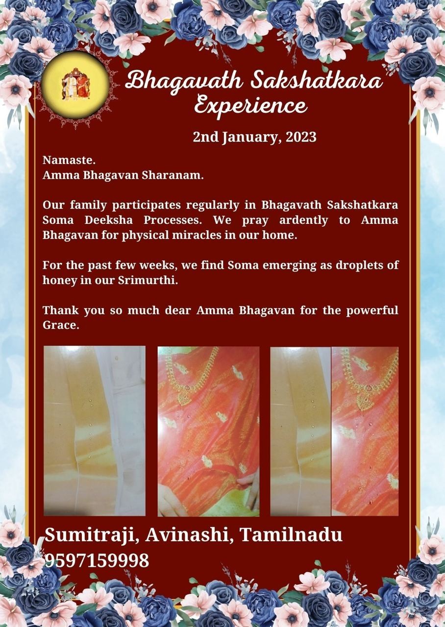 私たち家族はバガヴァット・サクシャッカーラ・ソマ・ディクシャのプロセスに定期的に参加しています。私たちは、我が家に物理的な奇跡が起こりますよう、熱心にお祈りしています。