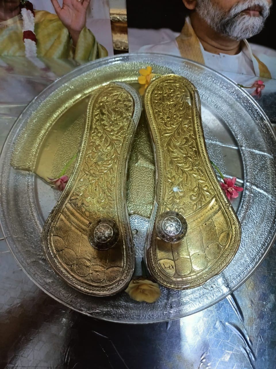 2日前にバガヴァット・サクシャッカーラ・プログラムで、アビシェーカム(マントラを唱えながら神の像に水やその他の神聖な物質を注ぐヒンズー教の儀式)をしていたときに、女神カニャカ・パラメシュワリのお写真からウコンの形のソーマ、パドゥカから蜂蜜の形のソーマが届きはじめました。