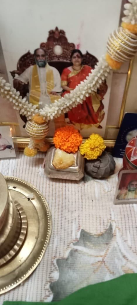 それからしばらくして、母は再びプージャの部屋に入り、パラムカルナ・パラムジョッティが彼女の祈りを叶え、お供えした捧げものを受け取っておられるのを見ました。