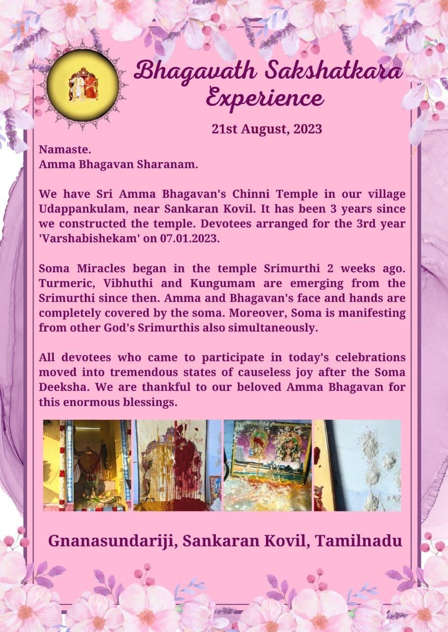 2週間前、寺院のシュリムルティでソーマの奇跡が始まりました。