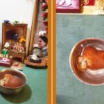 私の母がシュリ・ムルティーの前に、スイート・コーンをお供えしていました。私は用事があって、外に出かけていました。帰宅後、私はまずプージャー・ルームに行って、プラサードを頂こうと決めていました。アンタリアーミン・バガヴァンが「私を見てごらん」とおっしゃり、私がバガヴァン見ると、バガヴァンはトウモロコシを召し上がっていました。いくつかはお口にくっついており、いくつかは床にこぼれていました。
