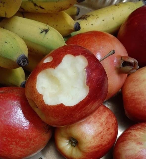 夜になって、お祈りして寝るために戻ってきた時、シュリ・アンマ・バガヴァンがリンゴをかじってくださったのを見て、私はびっくりして、とても嬉しくなりました。
