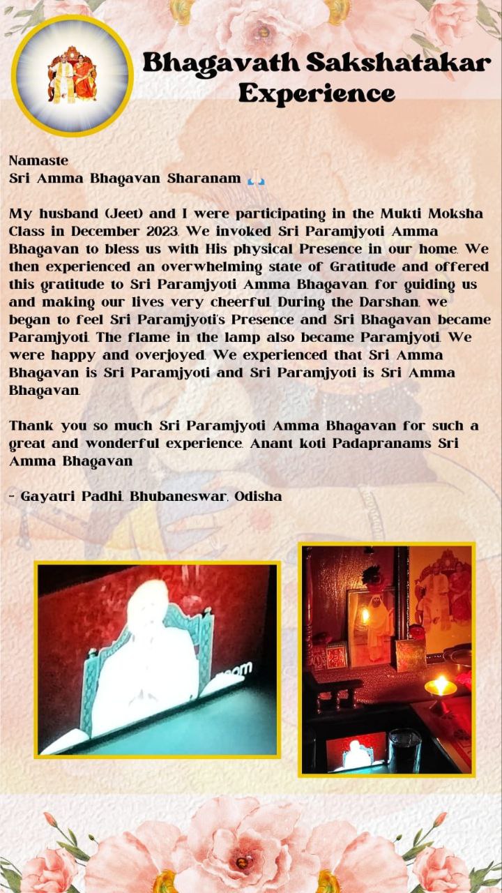 私の夫(ジェート)と私は2023年12月のムクティ・モクシャクラスに参加しました。私たちはシュリ・パラムジョッティ・アンマバガヴァンを呼び覚まし、我が家に物理的な顕現を祝福してくださるようお願いしました。
