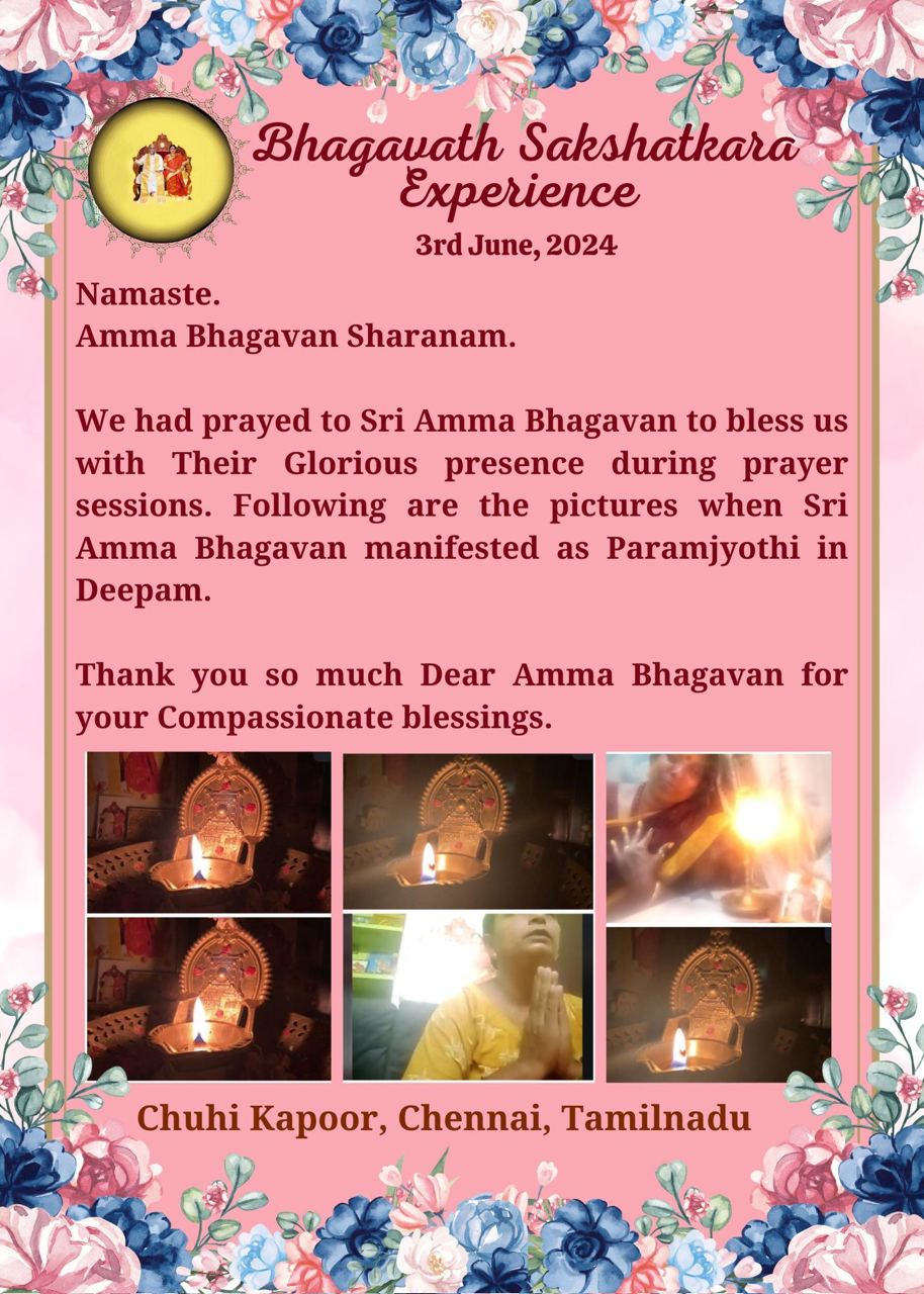 私たちはシュリ・アンマバガヴァンに、祈りのセッションの間、彼らの輝かしい存在感と共に私たちを祝福してくださるよう祈りました。こちらの写真が、シュリ・アンマバガヴァンがディーパム(光の祭典)でパラムジョッティとして顕現してくださったものです。