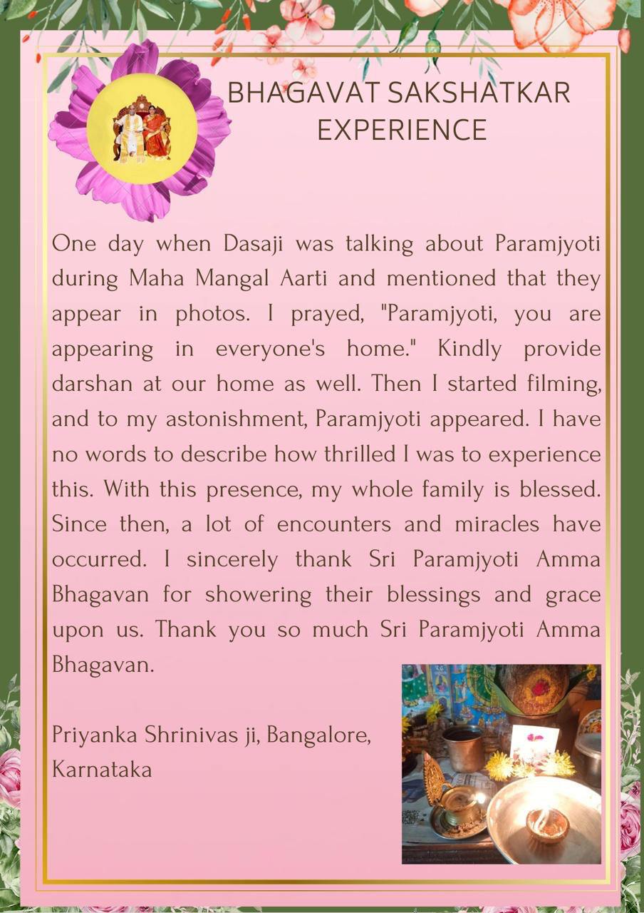 ある日、ダーサジがマハ・マンガル・アルティの時にパラムジョッティのお話をされていて、パラムジョッティは写真の中に現れなさいます。と言われました。