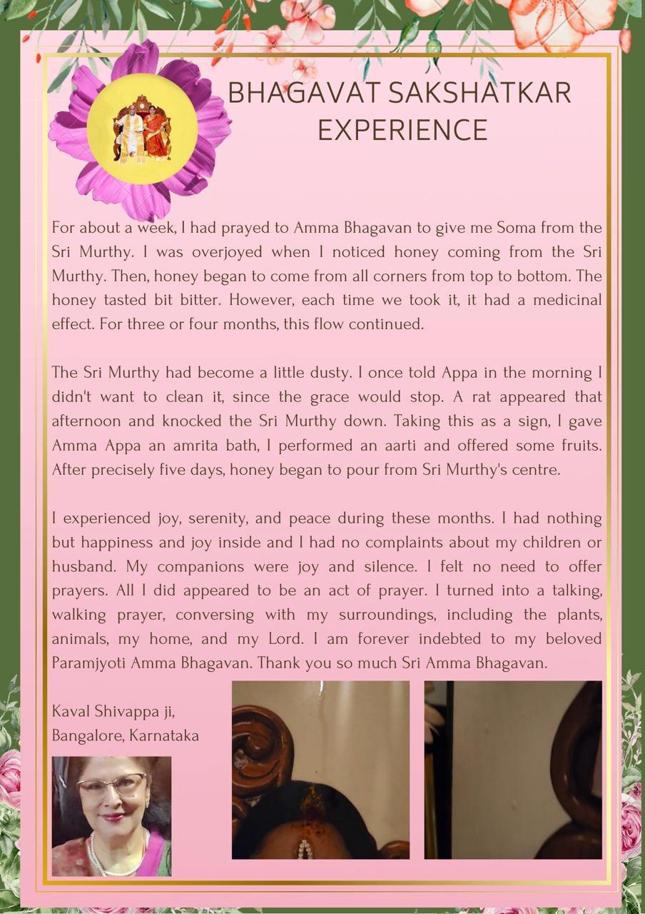 私はこれを兆しだと受け止め、アンマとアッパにアムリタのお風呂を捧げ、いくつかの果物を捧げてアルティを行いました。