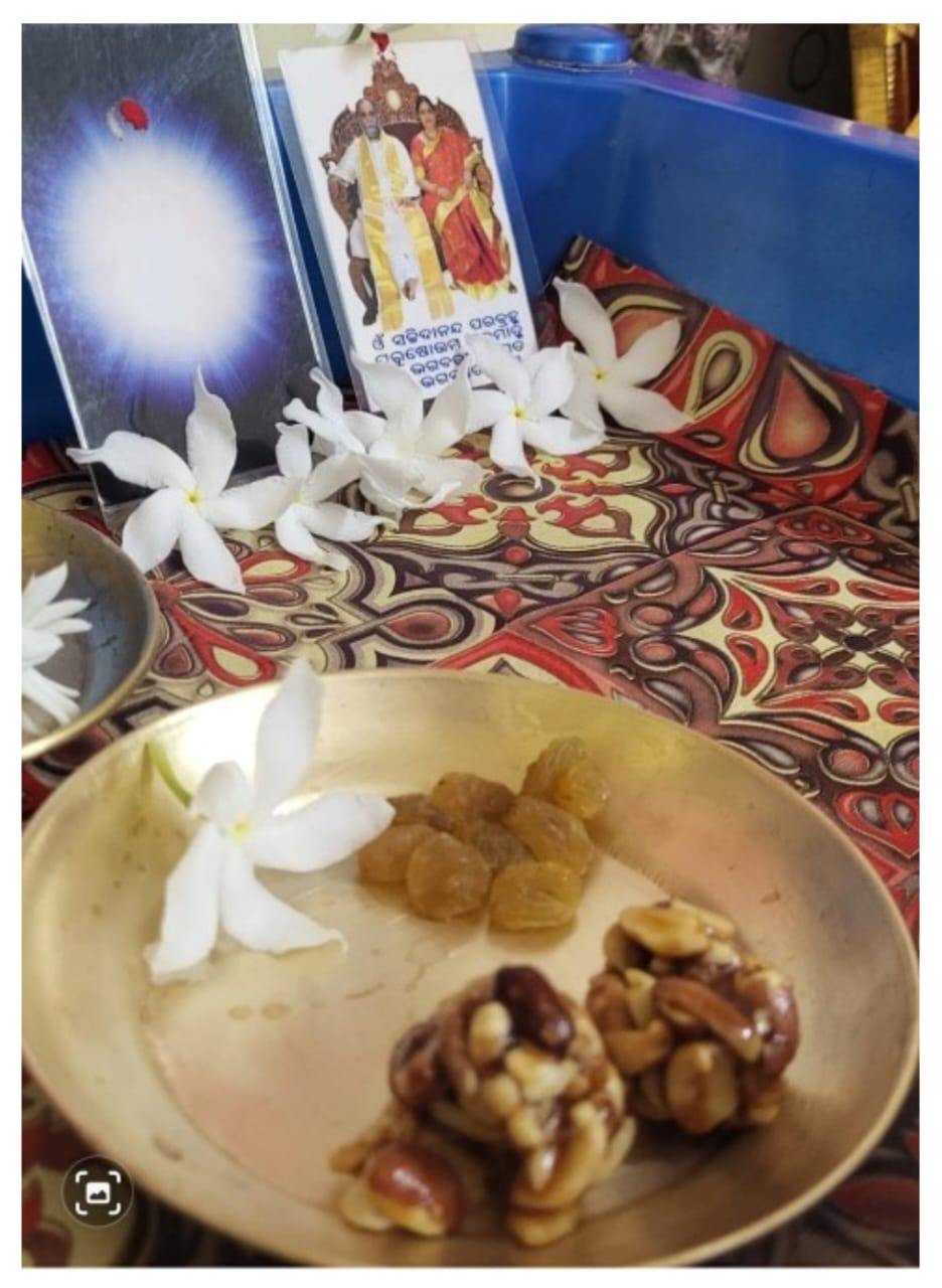 昨日のプージャでは、シュリ・アンマとアッパ(お父さま)に2つのピーナッツ・ラドゥーを捧げました。それから私はお祈りとマントラを唱えるために座りました。お祈りを終えた後、ラドゥーの1つを、神聖なる母と父が一部お召し上がりになられているのを見た時、私の喜びはとどまるところを知りませんでした。私のハートは、親愛なるシュリ・ナーラーヤニ(神の女性的側面)とシュリマッド・ナーラーヤナ(神の男性的側面)への深い感謝と献身で満たされています。