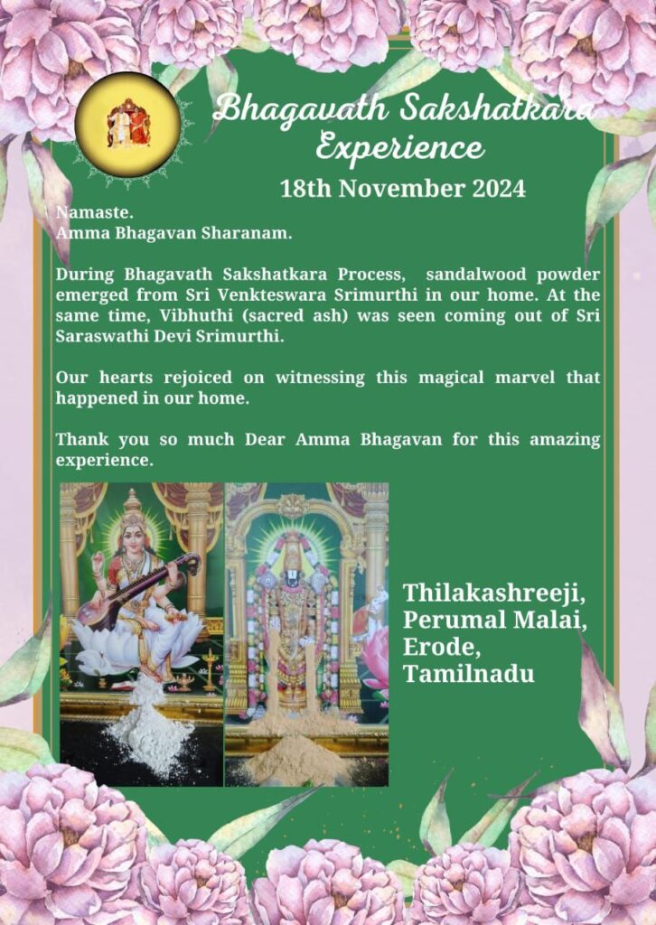 同時に、ヴィブーティ(聖なる灰)が シュリ サラスワティ デヴィのシュリムルティから出てくるのが見られました。