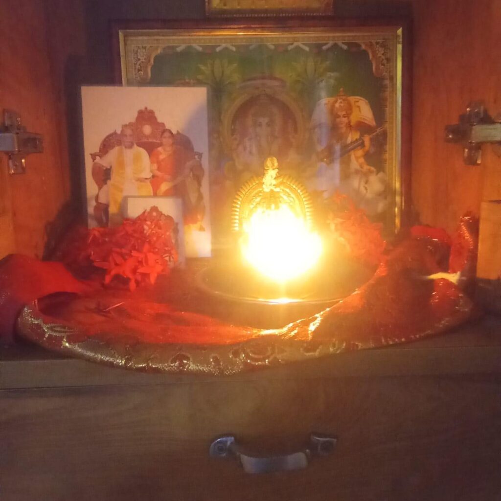 私はシュリムルティの前にパラムジョッティのランプを灯しました。