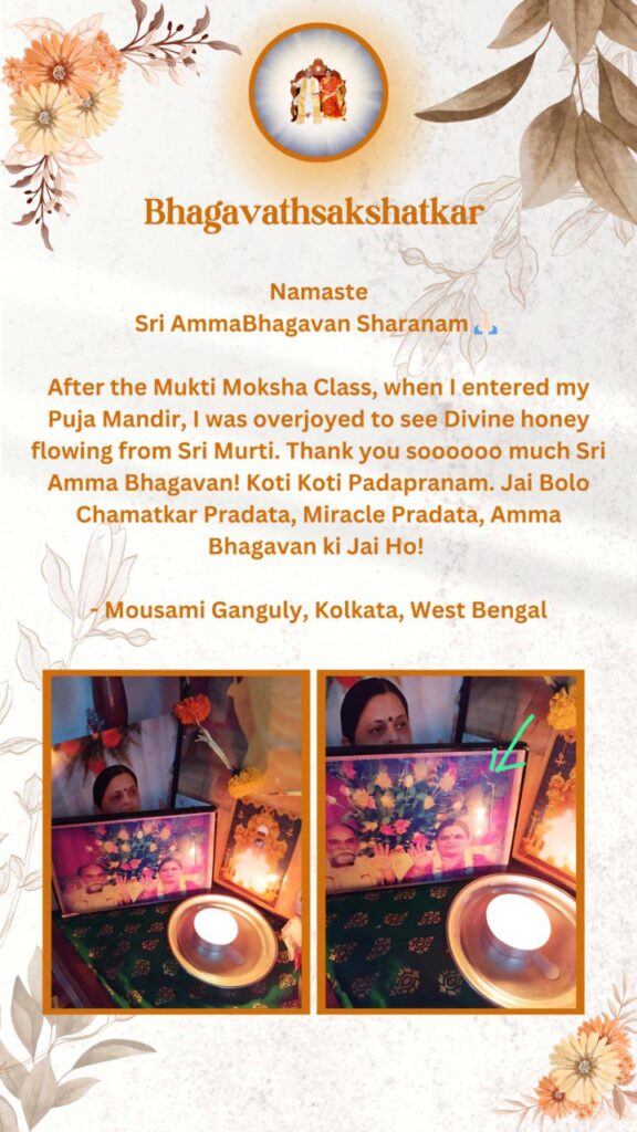 ムクティ・モクシャ・クラスの後、私がプージャマンディールに入ると、聖なるハニーがシュリムルティから流れるのをみて圧倒されました。