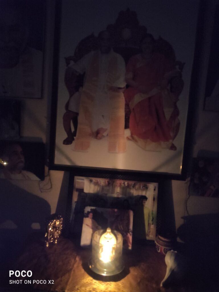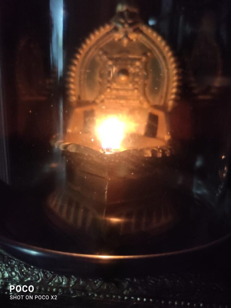 まさにその瞬間、シュリ・ムルティの前に置かれたランプの炎の中にパラムジョッティが顕現されました。