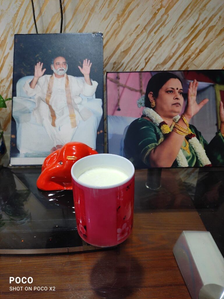 ある時は、シュリ・アンマ・バガヴァンのシュリ・ムルティの前に、縁までミルクで満たされたグラスを置きました。
