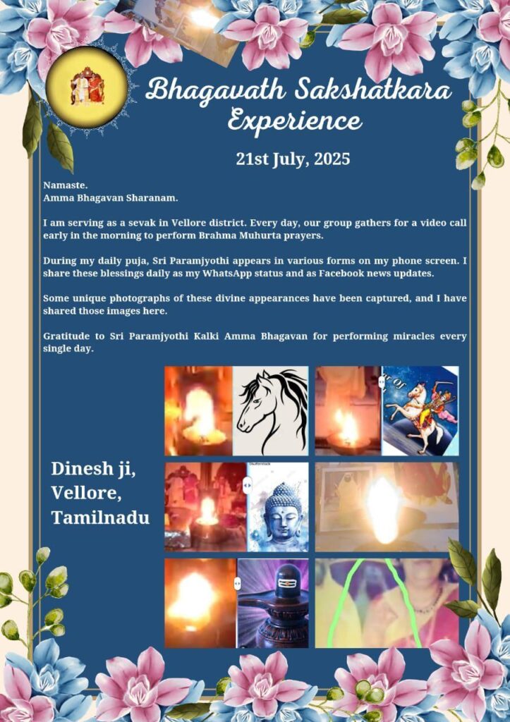 毎日欠かさず奇跡を起こしてくださいますことに対し、シュリ パラムジョッティ カルキ アンマ バガヴァンに感謝の気持ちを捧げます。