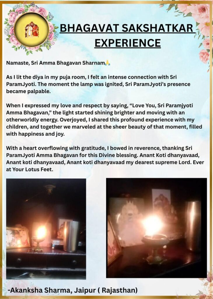 心から溢れるほどの感謝とともに、この神聖な祝福をくださったシュリ・パラムジョッティ・アンマバガヴァンに、敬意をこめて敬礼いたしました。