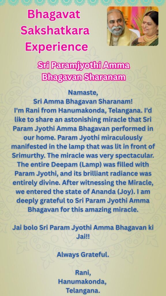 私はテランガナ州ハヌマコンダ出身のラニです。シュリ・パラムジョッティ・アンマバガヴァンが