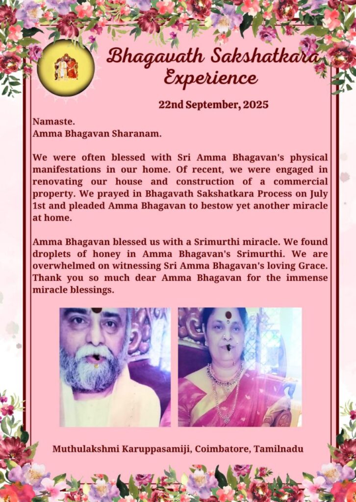 7月1日のバガヴァット サクシャッカーラ プロセスで 私たちは祈りを捧げ、我が家に さらにもう一つの奇跡を授けてくださるよう アンマ バガヴァンに懇願しました。