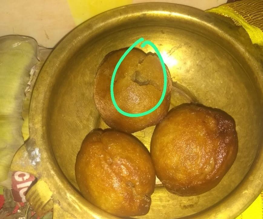 ホーマの場所を片づけましょうと戻ってきた時、ウニヤッパムに穴が空いているのを見て、驚きで固まってしまいました