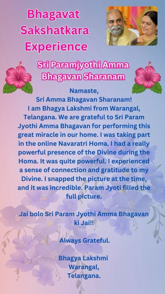 この素晴らしい奇跡が私たちの自宅で起こった事にシュリ・パラムジョッティ・アンマバガヴァンに心から感謝します。