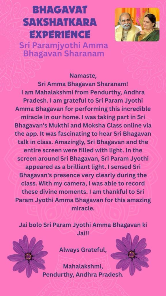 シュリ・パラムジョッティ・アンマバガヴァンが私たちの家で起こして下さった信じられない奇跡に心から感謝いたします。