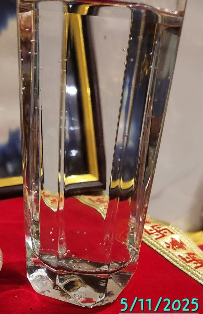 今朝、私はプージャルームに入り、シュリ・パラムジョッティ・アンマ・バガヴァンの前に水の入ったグラスを置き、いつものお祈りを捧げるとともに、バガヴァンに「どうかこの水をソーマへと変えてくださいますように」と願いを込めました。