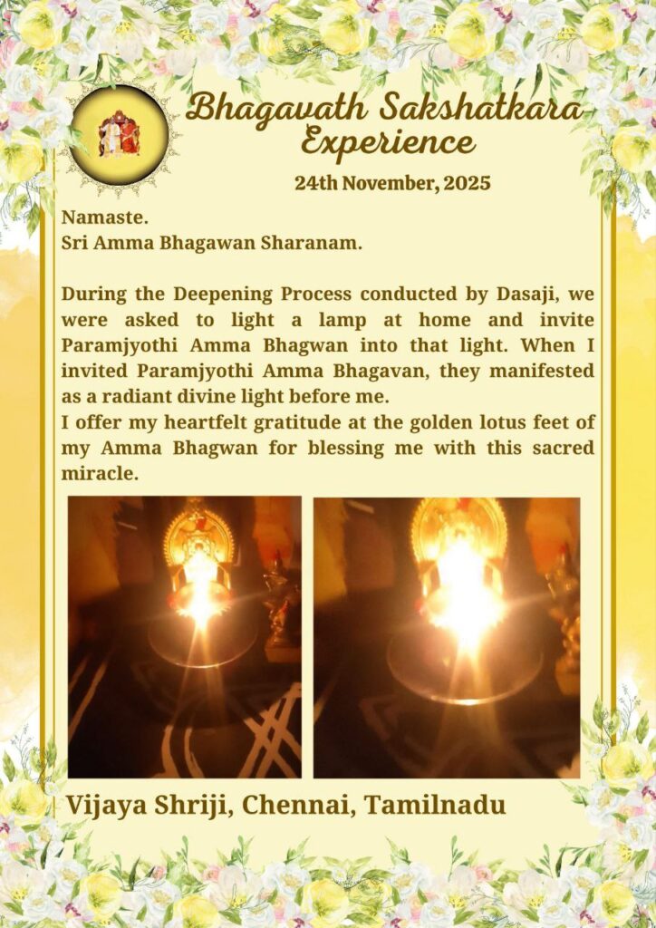 私がパラムジョッティ・アンマバガヴァンをお招きすると、彼らは輝く神聖な光として私の前に顕現されました。