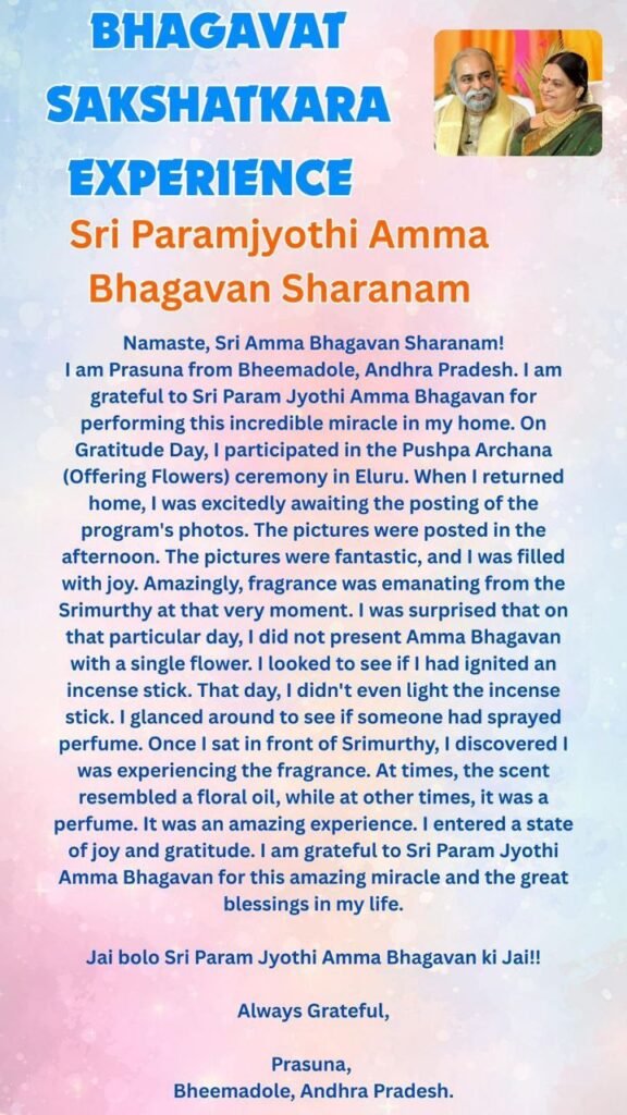 この素晴らしい奇跡と人生における偉大な祝福にシュリ・パラムジョッティ・アンマバガヴァンに心から感謝いたします。