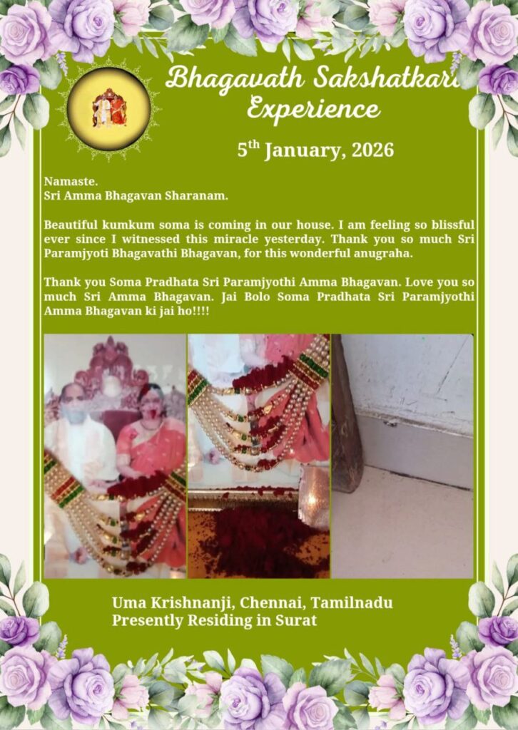 この素晴らしい恩寵を賜り、シュリ・パラムジョッティ・バガヴァティ・バガヴァンに心より感謝申し上げます。