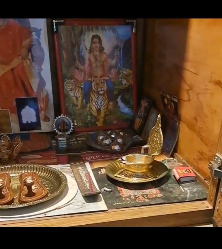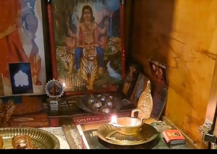 プロセスの最中、プージャテーブルのランプに火を灯しました。