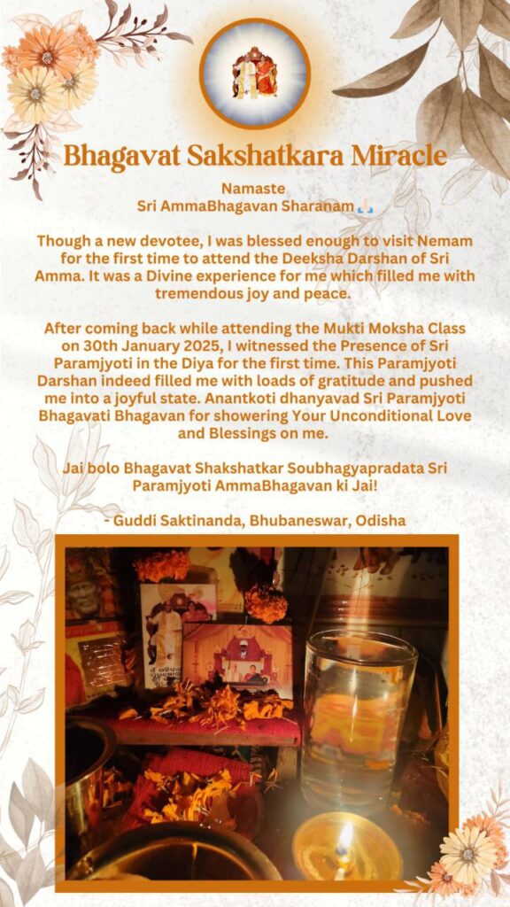 戻ってから2025年1月30日のムクティ・モクシャ・クラスに参加していた際に、私は初めてディヤ(灯明)の中にシュリ・パラムジョッティの存在を目の当たりにしました。