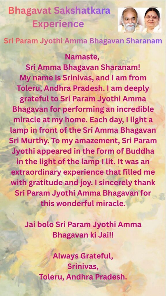 我が家で起こされました驚くべき奇跡に対し、シュリ・パラム・ジョッティ・アンマ・バガヴァンに深く感謝申し上げます。