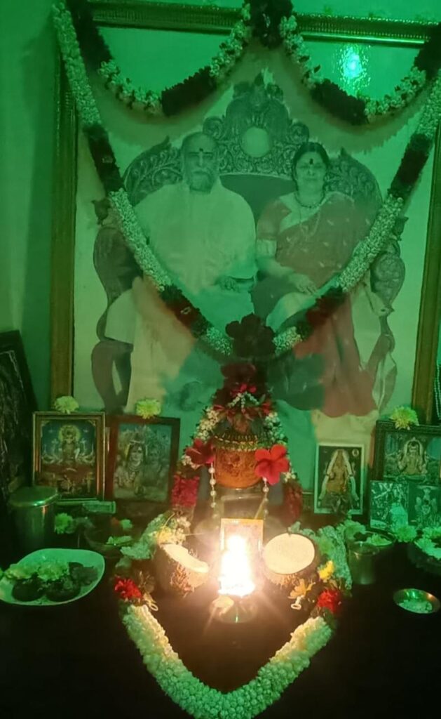 毎日のこと、シュリ・アンマ・バガヴァンのシュリ・ムルティの前に灯明を灯しております。