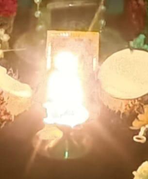 驚きましたことに、灯した灯明の光の中に、シュリ・パラム・ジョッティが仏陀のお姿で顕現されたのです。